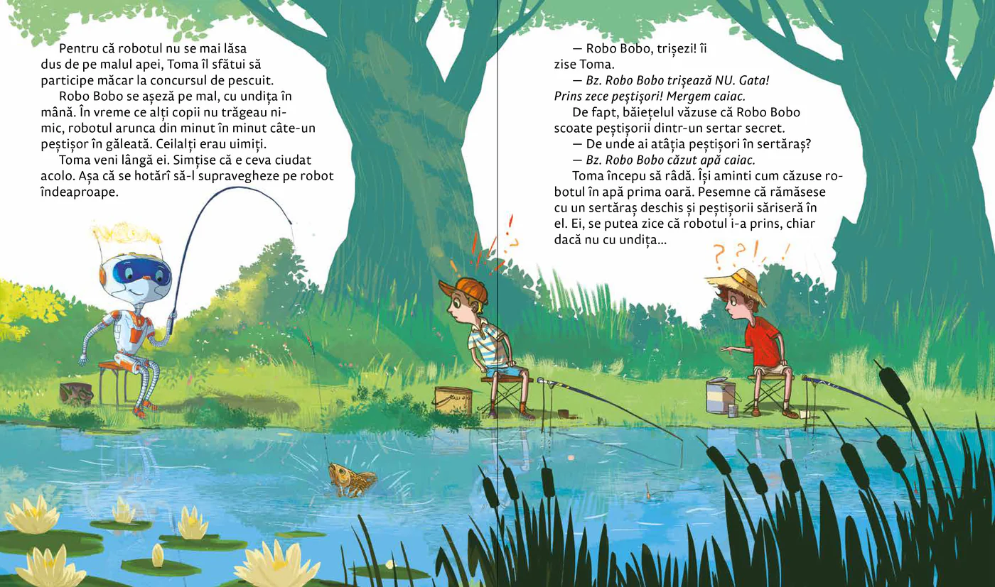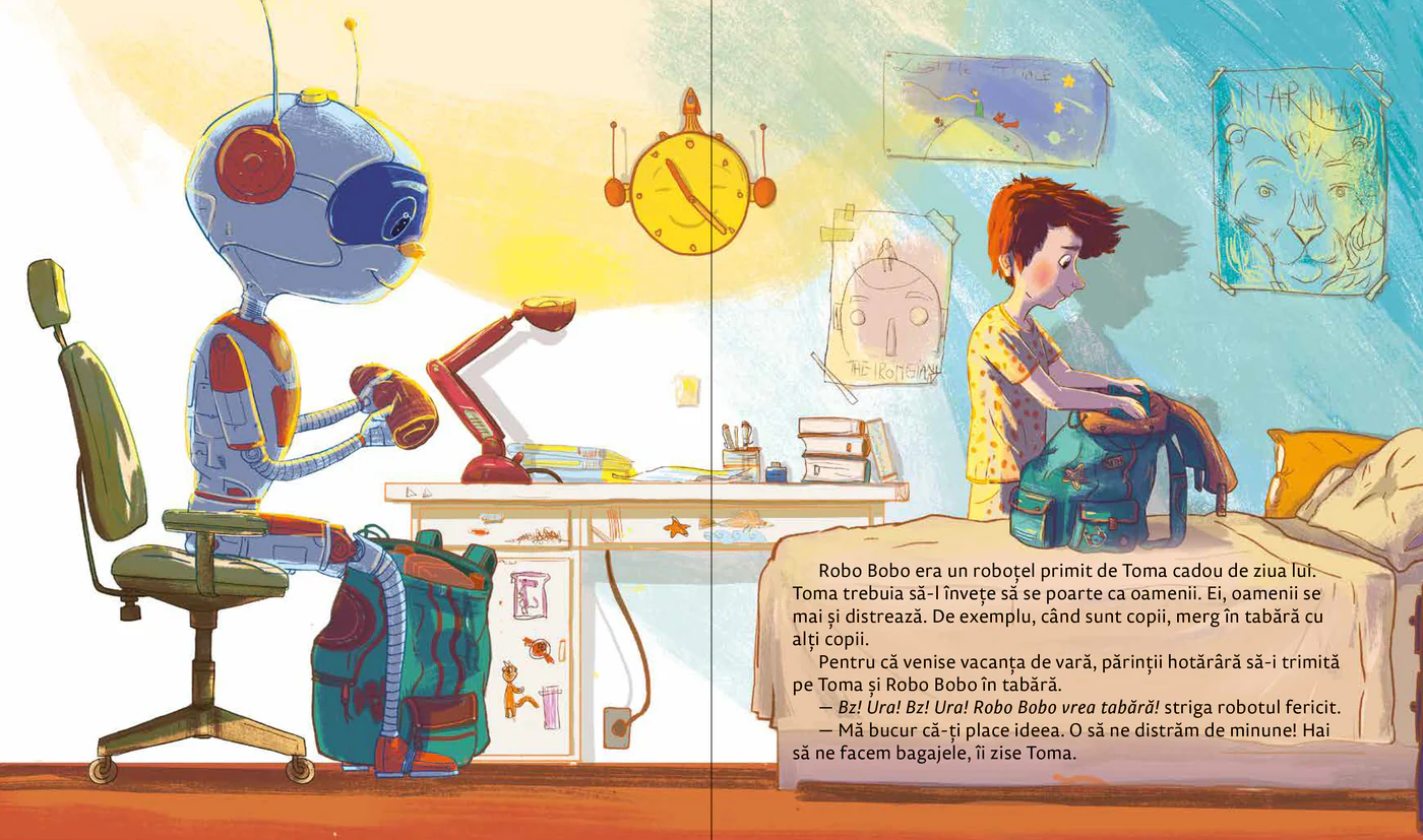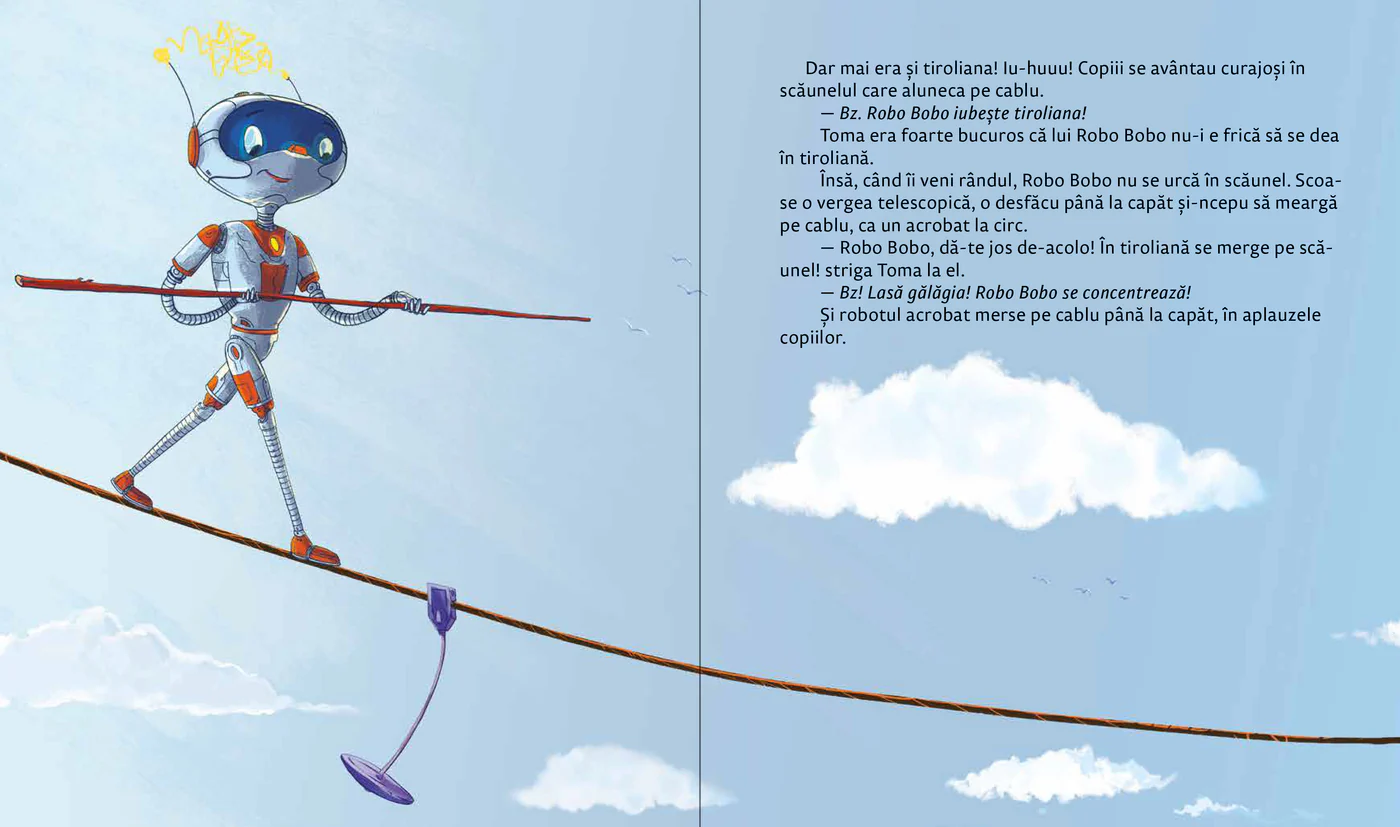 Robo Bobo își face curaj” este o carte pentru copii care abordează, într-un mod blând și încurajator, teama și nesiguranța cu care se confruntă cei mici în diferite situații noi.