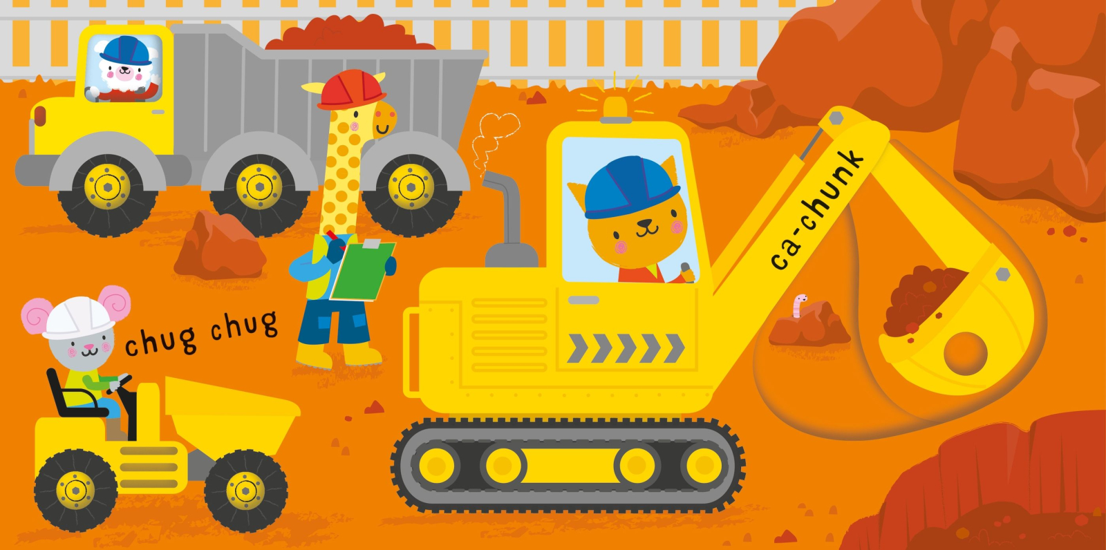 Cartea prezintă o varietate de vehicule îndrăgite de cei mici: mașini, camioane, trenuri, avioane, bărci și multe altele. Ilustrațiile sunt colorate, prietenoase și ușor de recunoscut, iar mecanismele sunt robuste și ușor de manevrat de către copiii mici.