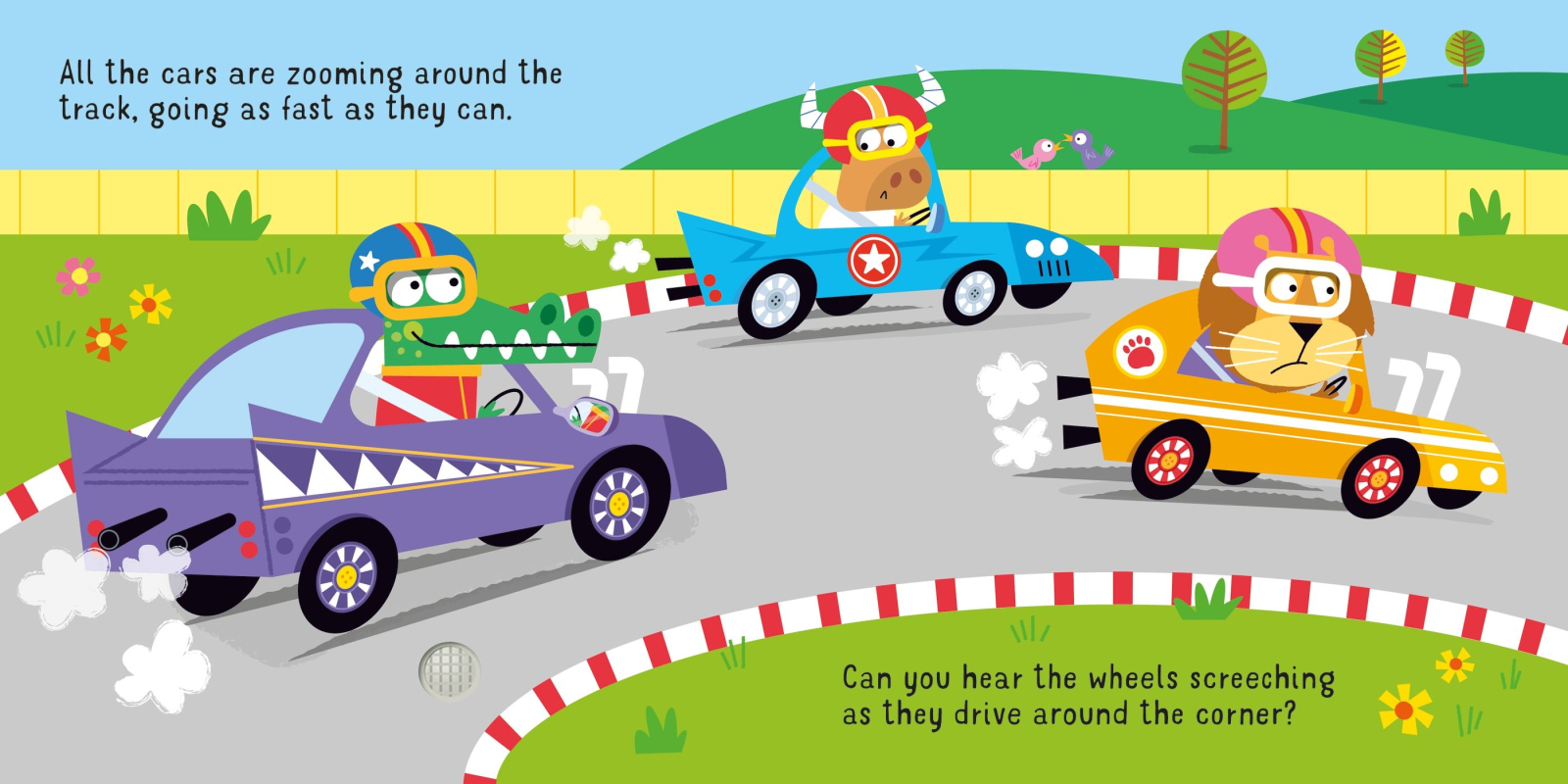 „Let’s Go in a Racing Car!” este o carte cartonată plină de energie și viteză, creată pentru copiii care adoră mașinile de curse și aventurile pe circuit. Cartea îi invită pe cei mici să urce la bordul unei mașini de competiție și să pornească într-o cursă palpitantă, urmărind traseul, depășirile și momentele pline de adrenalină.