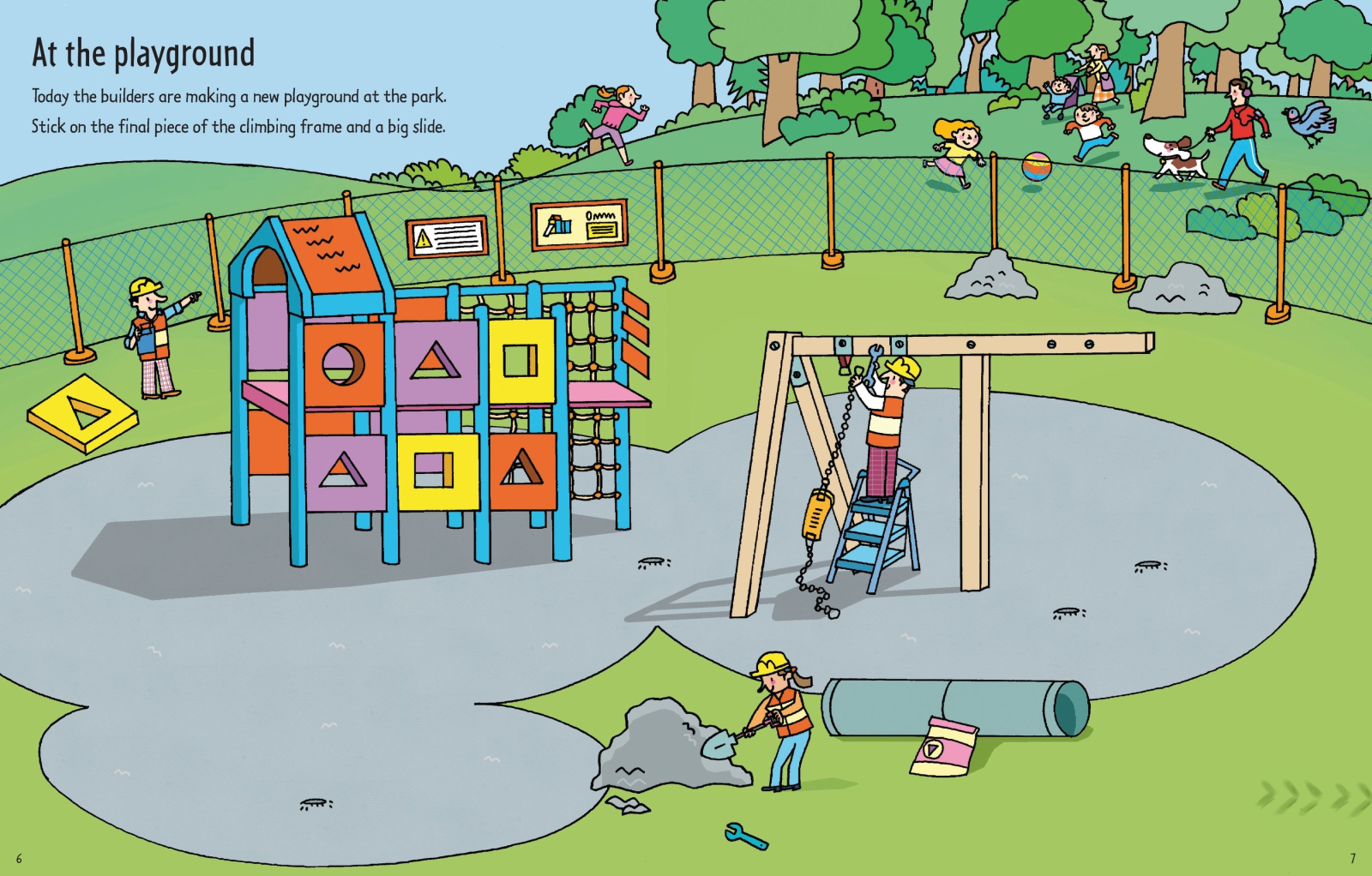 „First Sticker Book Building Sites” este o carte de activități captivantă, ideală pentru copiii fascinați de utilaje de construcții, șantiere și munca în echipă. Cartea include peste 100 de autocolante mari, ușor de manevrat, cu excavatoare, buldozere, macarale, camioane, muncitori, semne de circulație și multe alte elemente specifice unui șantier în plină activitate.