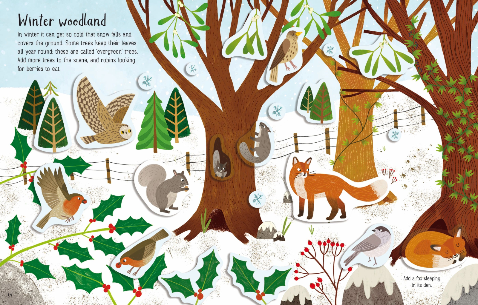 „First Sticker Book Seasons” este o carte de activități minunată, concepută pentru a-i ajuta pe copii să descopere cele patru anotimpuri prin joacă creativă. Cartea include peste 100 de autocolante mari, ușor de manevrat, cu personaje, animale, plante și obiecte specifice fiecărui sezon.