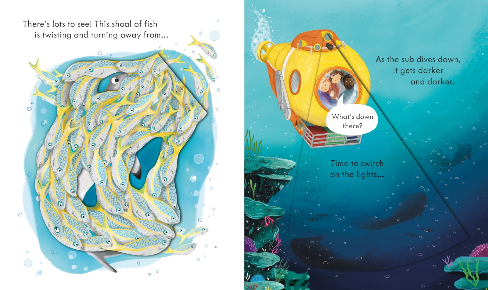Cartea este plină de detalii captivante, prezentate într-un mod simplu și accesibil, perfect pentru copiii curioși care adoră tehnologia, vehiculele și explorarea lumii subacvatice. Ferestrele decupate și clapetele îi invită pe copii să descopere pas cu pas mecanismele ascunse, transformând lectura într-o experiență interactivă și educativă.
