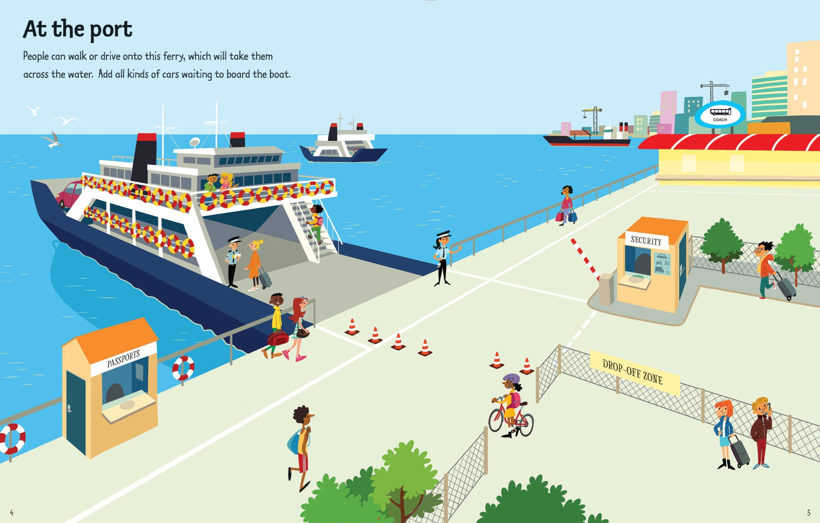 „First Sticker Book: Travel” este o carte de activități interactivă, perfectă pentru copiii pasionați de aventuri și descoperirea lumii. Cartea include peste 100 de autocolante cu mijloace de transport, peisaje, obiective turistice și personaje în vacanță, pe care copiii le pot lipi pe paginile ilustrate cu scene detaliate din diverse locuri ale lumii.