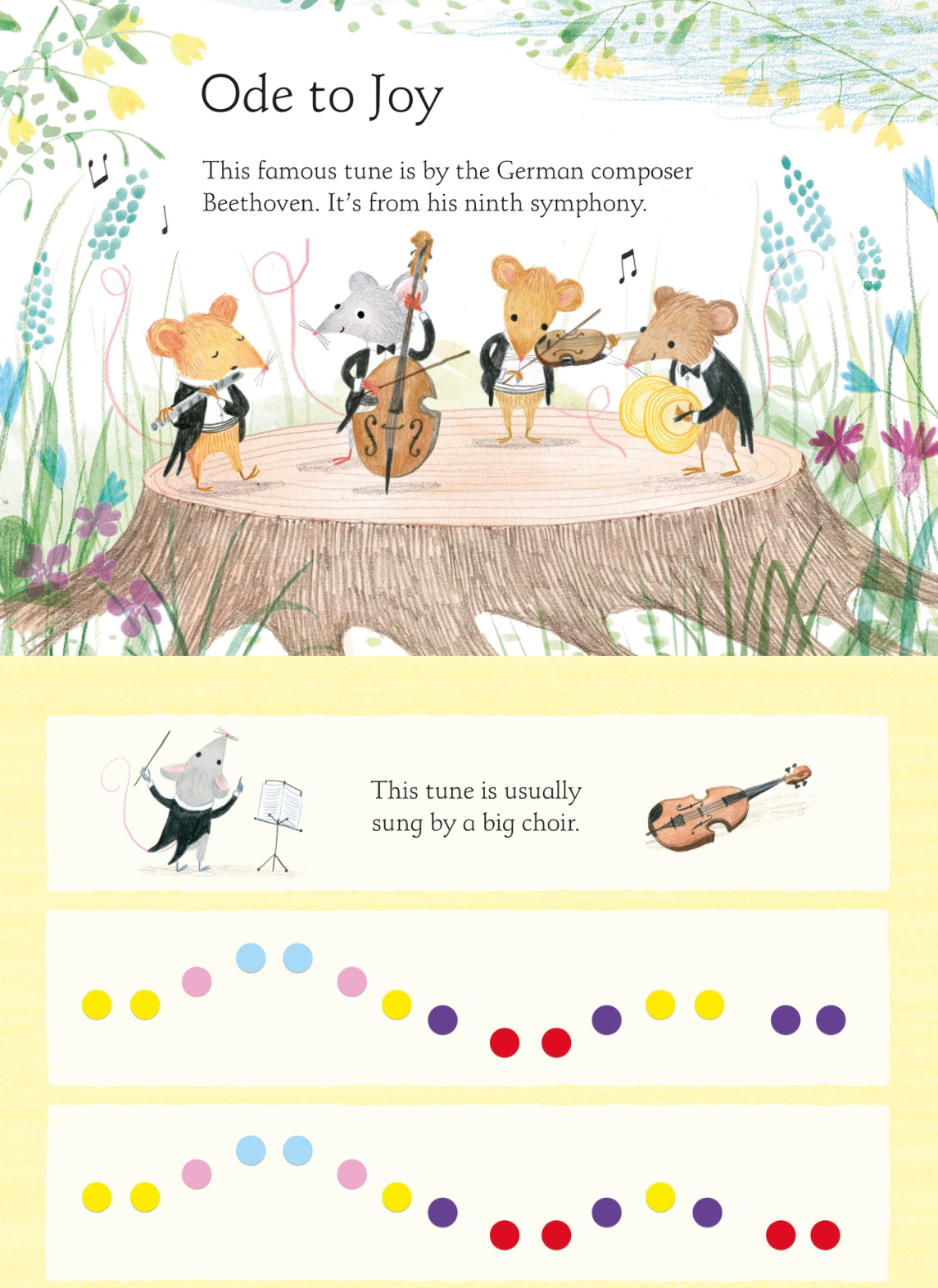 Cartea include o mini-claviatură integrată și pagini viu colorate care îi ghidează pe cei mici să cânte melodii simple urmărind codurile de culori și notele ilustrate. Copiii pot interpreta primele lor cântece pas cu pas, dezvoltându-și încrederea și coordonarea.