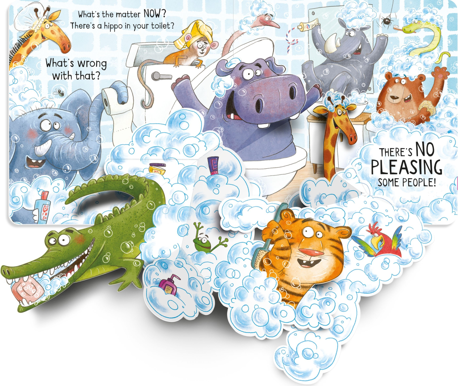 În „There's a Hippo in My Toilet!”, imaginația copiilor prinde viață într-o poveste comică și neașteptată. O situație aparent banală se transformă într-un scenariu absurd și amuzant, în care un hipopotam uriaș creează haos într-un spațiu foarte mic.